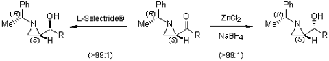 Stereoselective reduction of 2-acylaziridines to provide vicinal amino